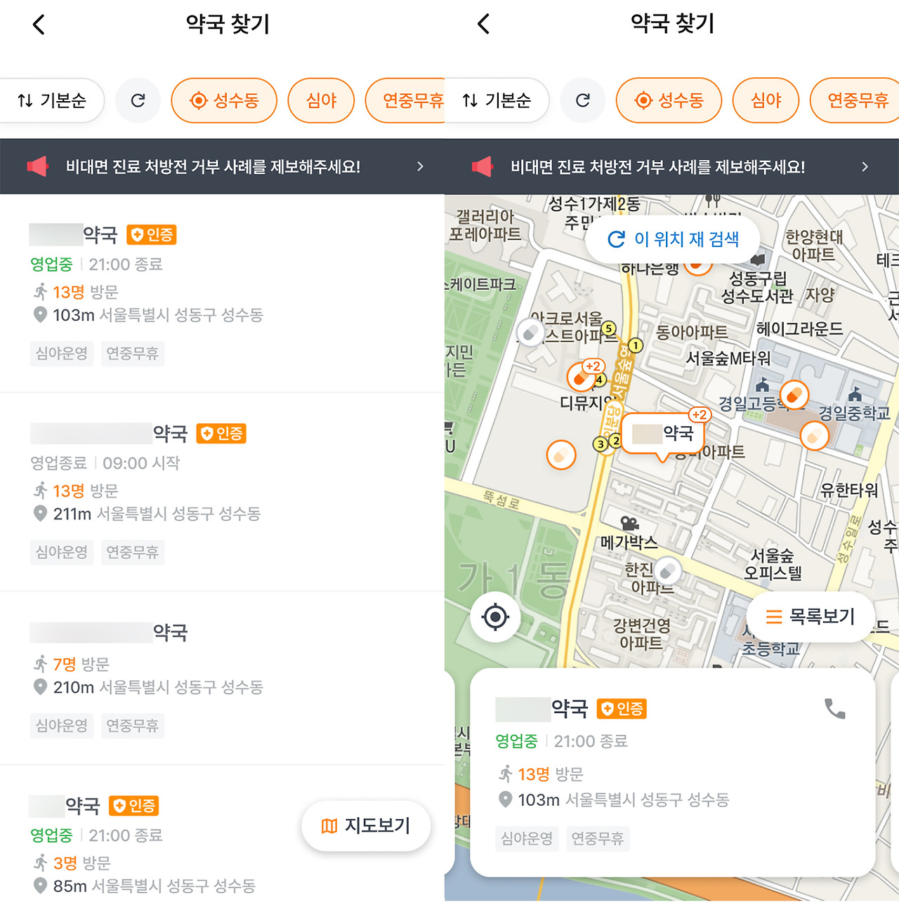특히, 저녁 시간의 경우 21:00, 21:30까지 운영하는 약국이 있기에, 아래 링크를 통해 찾아보시면 매우 편리합니다.