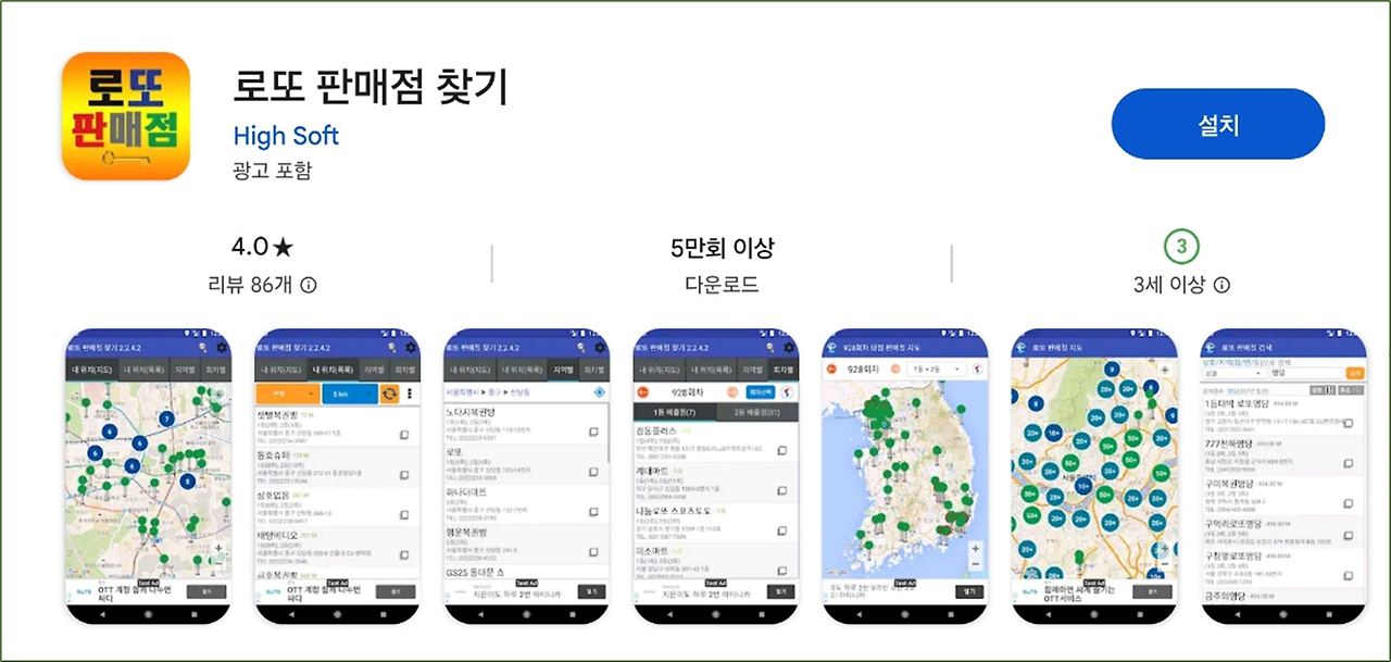 로또 판매점 찾기 설치 화면