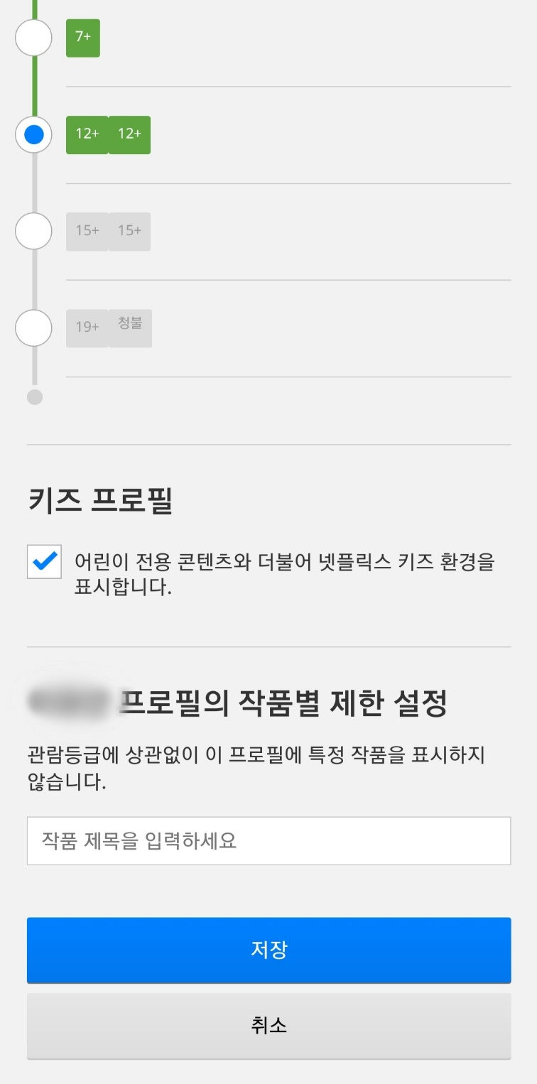 - ‘차단할 콘텐츠’ 목록에 특정 작품명을 입력합니다.