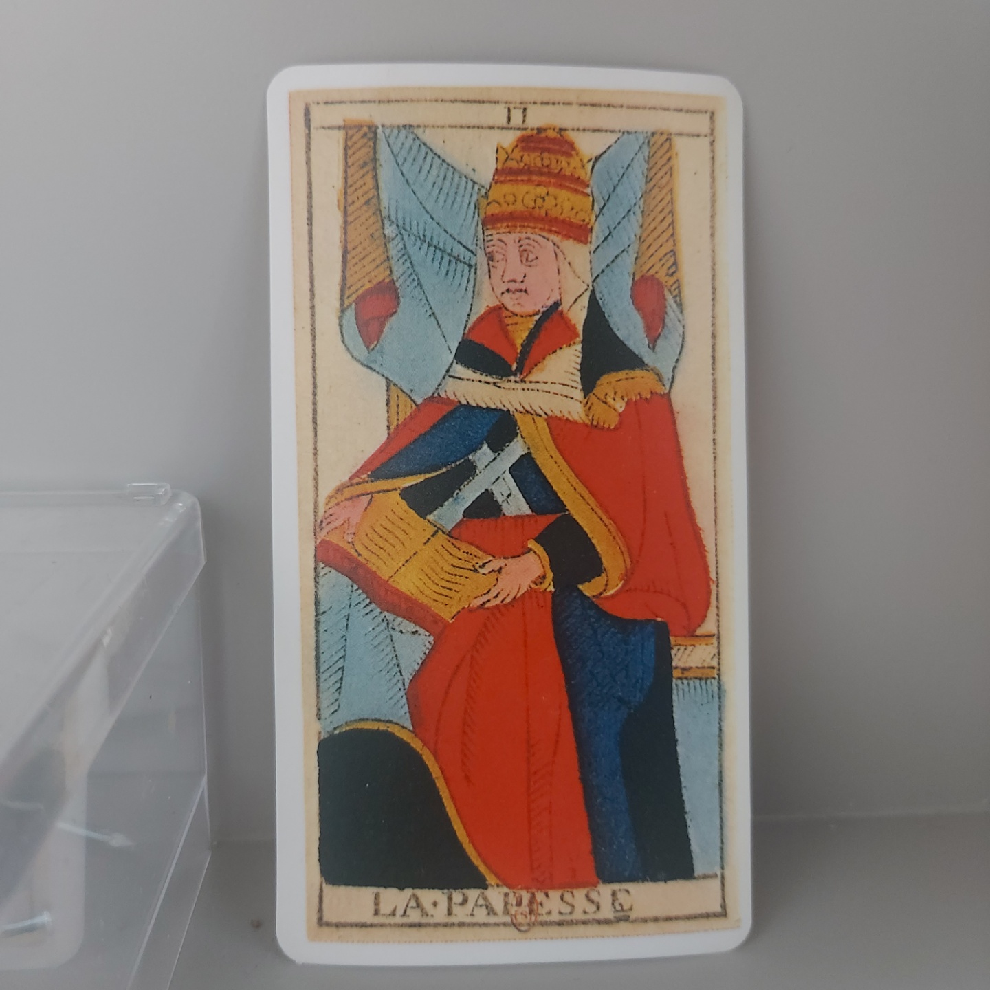 마르세유 타로 카드의 두 번째 아카나는 프랑스어로 'Papesse' 즉 '-esse'의 여성 접미사가 붙은 것을 알 수 있듯이,