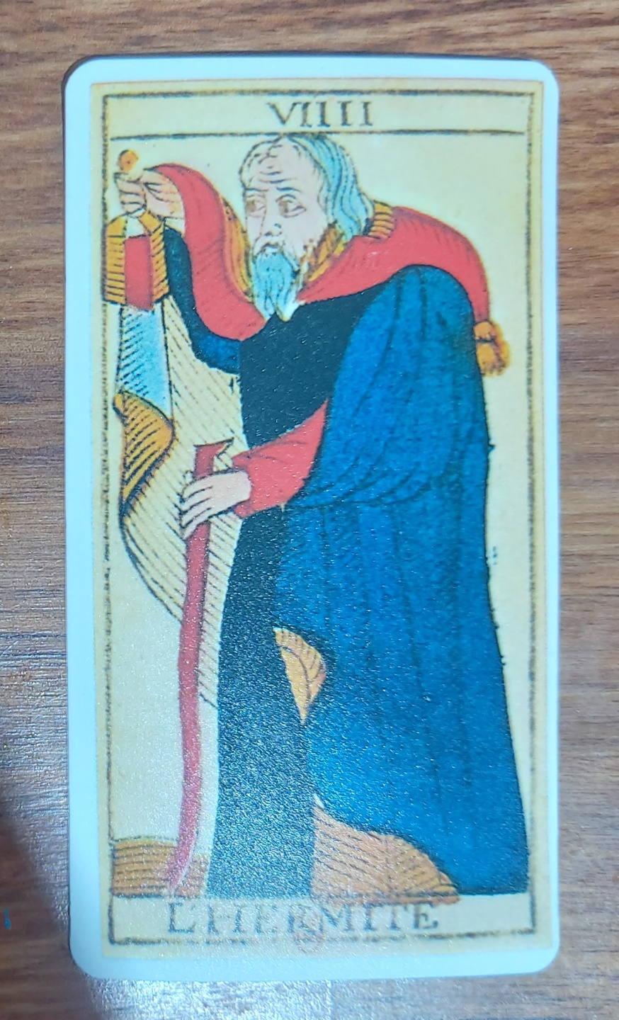 이 아카나를 선택했다면, 인생 경험이 풍부한 귀인이 당신을 도우러 올 수 있다. 그렇지만, 명확한 해결책을 주지 않다. 그가 주는 해결 방안은 두루뭉솔해 보일 수 있다. 하지만 은자가 등불을 들고 어둠을 밝히듯 신중하게 그 귀인이 해준 이야기를 천천히 이해하려고 하다보면, 현재 난관에 봉착한 일의 실마리를 찾을 수 있다. 그러므로 이 카드를 선택했다면, 주변 사람들이 해주었던 조언 혹은 충고들을 특별히 귀기울여 들어볼 필요가 있다. 누추한 행색을 하고 찾아온 은자와 같이 누가 정말 '은자' 의 역할로 찾아왔는지 알 수 없을 수 있다.