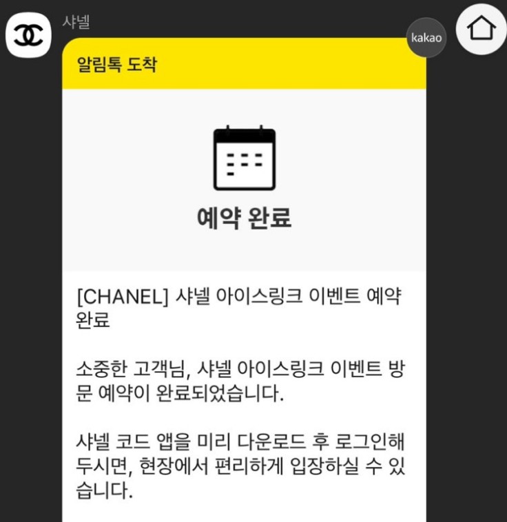 위의 희망 날짜를 지정하여, 예약을 완료하시면 아래와 같이 톡으로 알림을 받으실 수 있습니다. 이 알림 메시지를 통해 현장 체크인이 가능하십니다.
