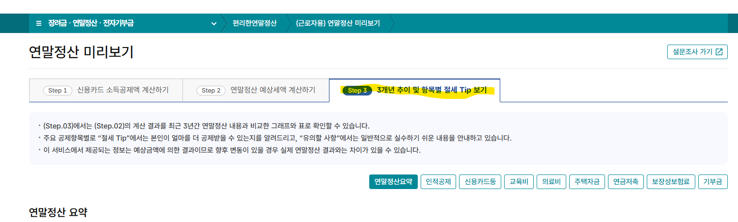 연말정산 미리보기 이용 시 유의사항
