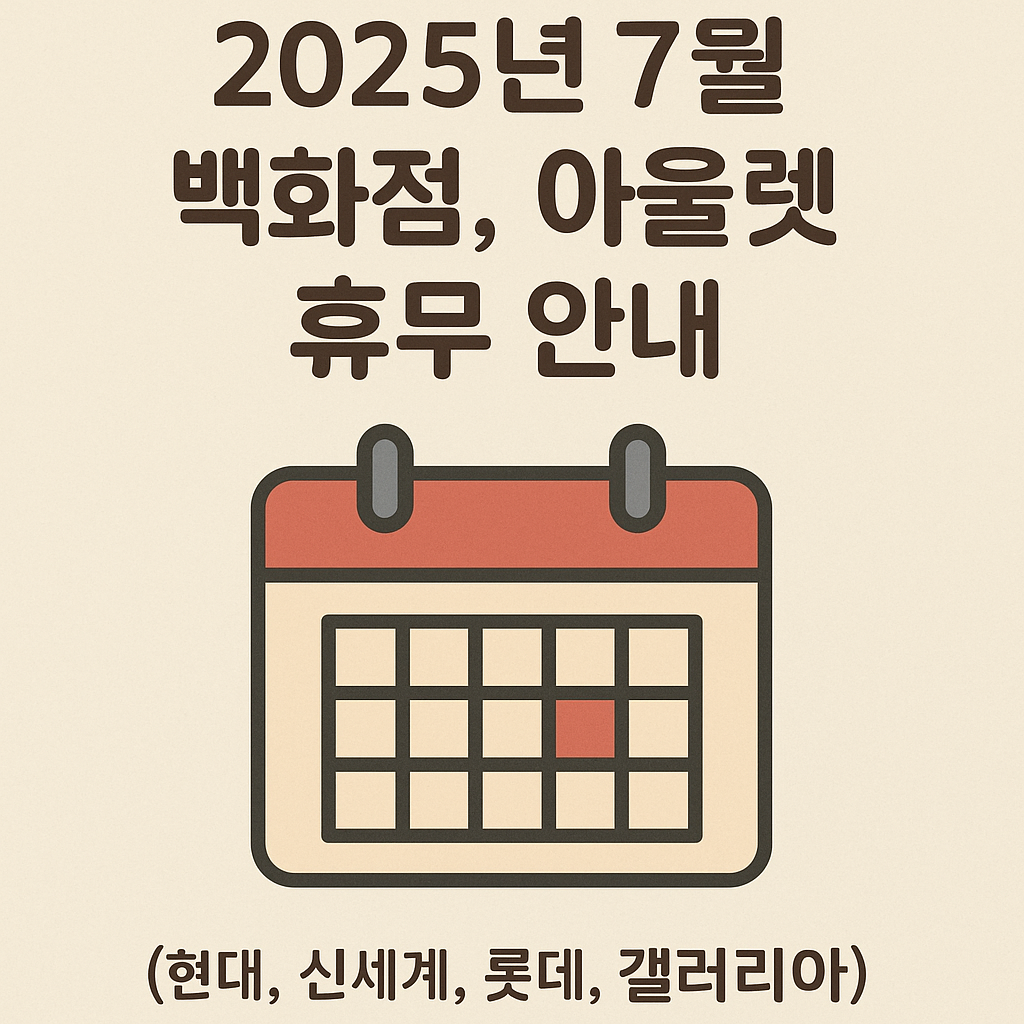 2025년 7월 백화점 휴무 및 정상영업 안내를 아래와 같이 정리해 드립니다.
