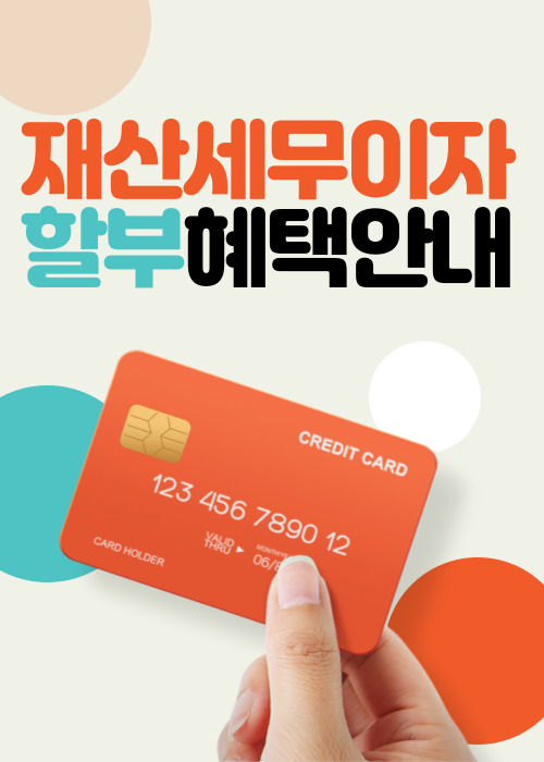 두 번째 재산세 납부의 달입니다. 금년 지방세 납부 관련 무이자 할부 가능한 카드 안내를 드리고자 합니다.