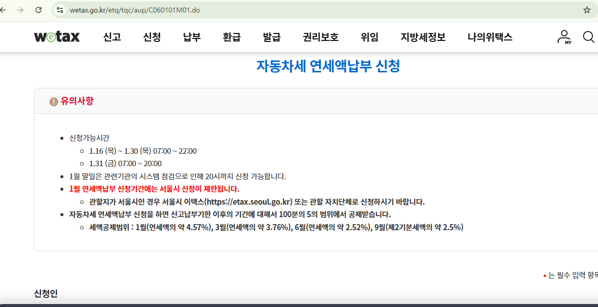 자동차 연납 할인 기간 신청 방법 안내