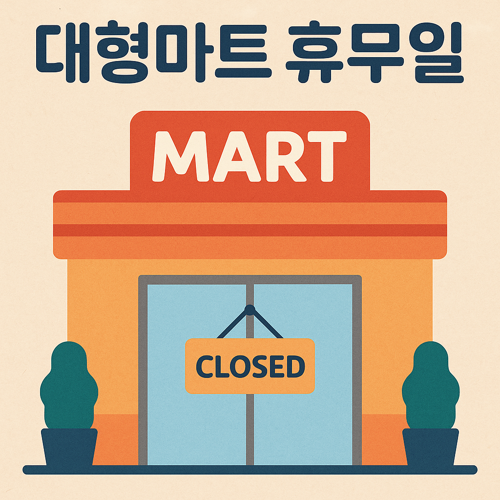 2025년 7월 일반적인 대형마트 휴무일은 유통산업발전법에 따라 매월 둘째 주 일요일, 넷째 주 일요일인 13일, 27일입니다. 그러나 기초 지자체 재량에 따라 약간 다른 날짜에 쉬는 곳이 있을 수 있습니다.